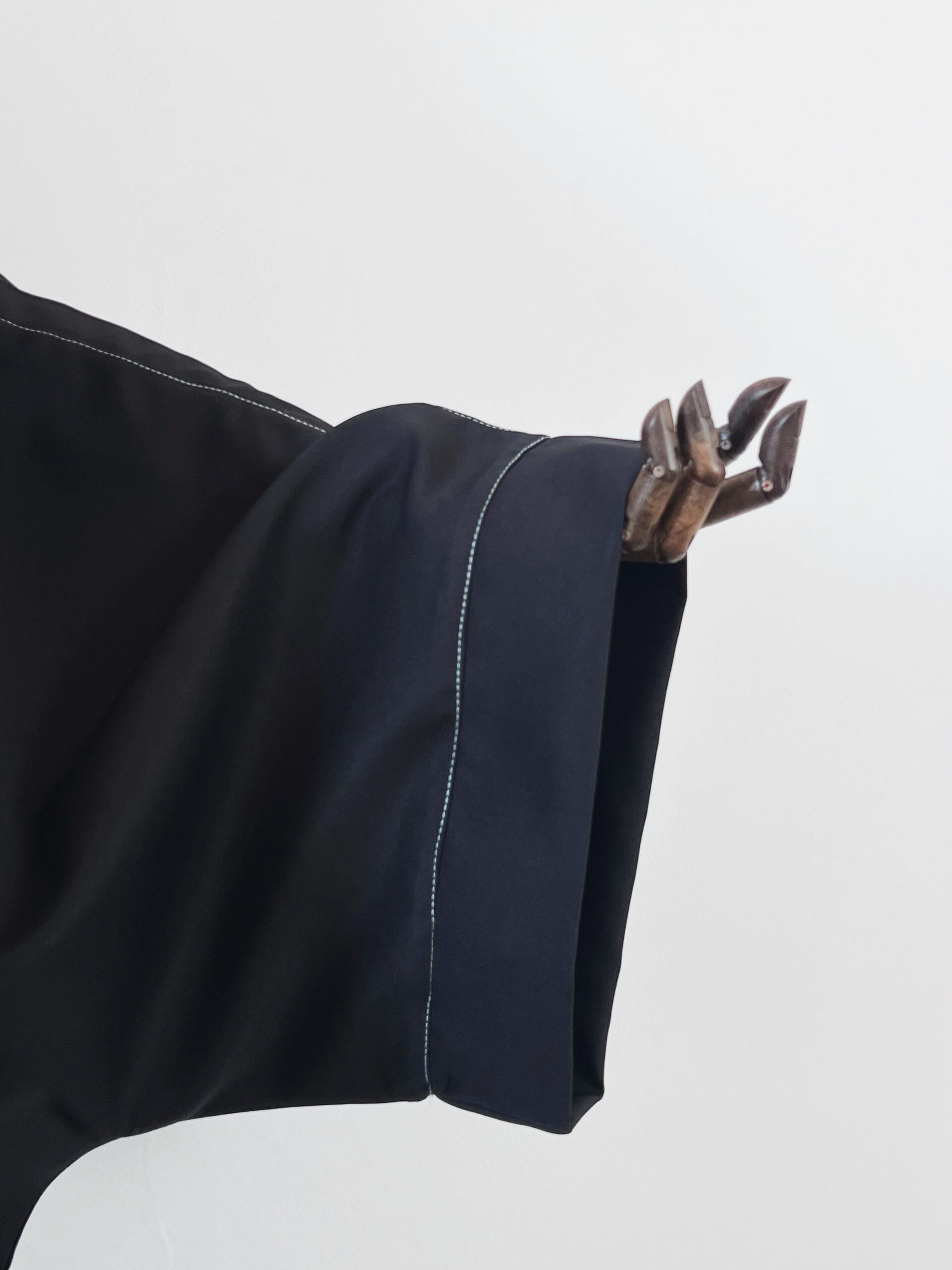 Les surpiqûres blanches, discrètes mais affirmées, apportent ce détail couture qui fait toute la différence. Elles soulignent la coupe avec subtilité et donnent à la pièce un vrai caractère premium.
