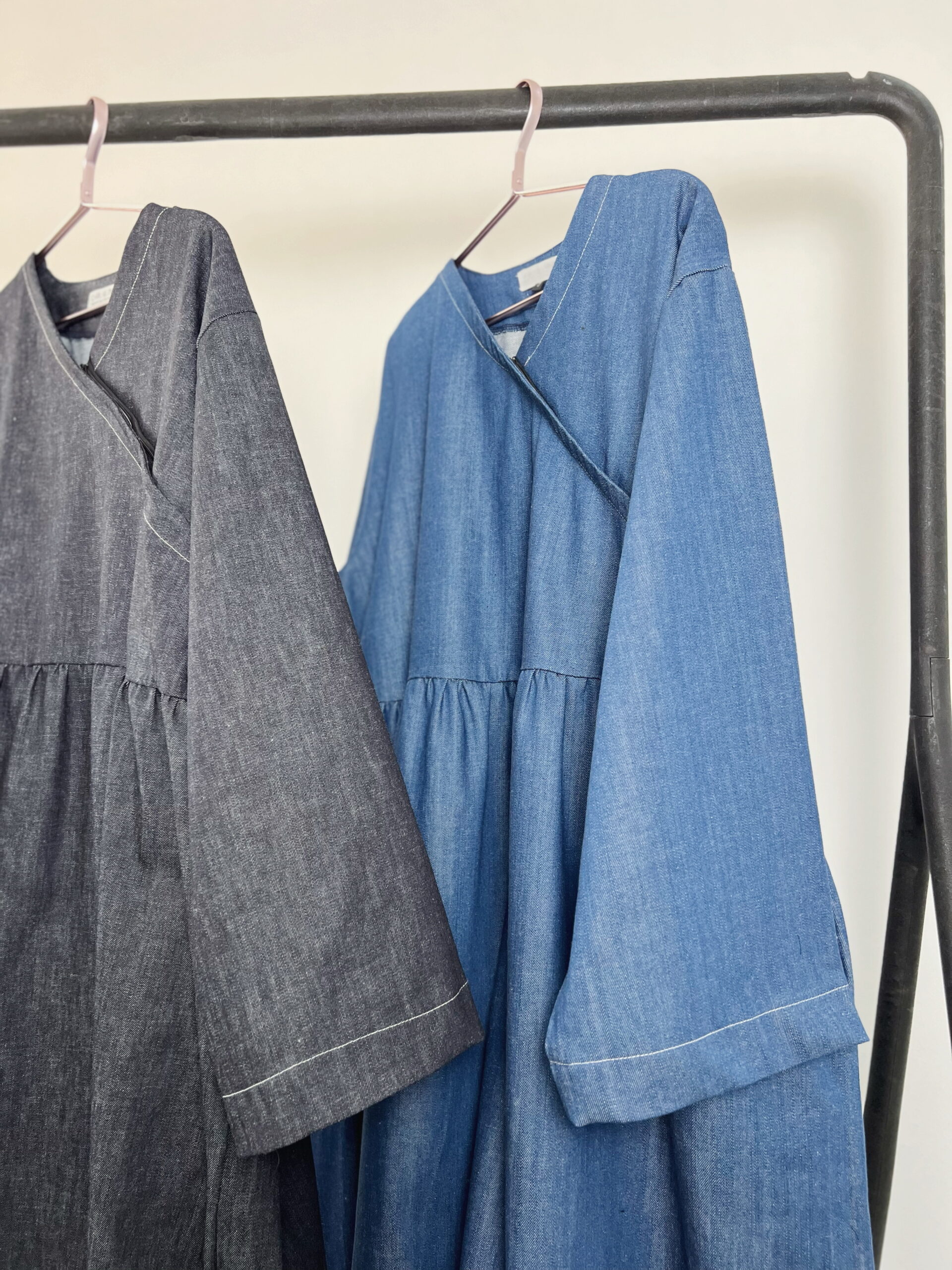 La Denim Dress revisite le denim sous une forme inédite : une abaya fluide et structurée, inspirée du kimono japonais.