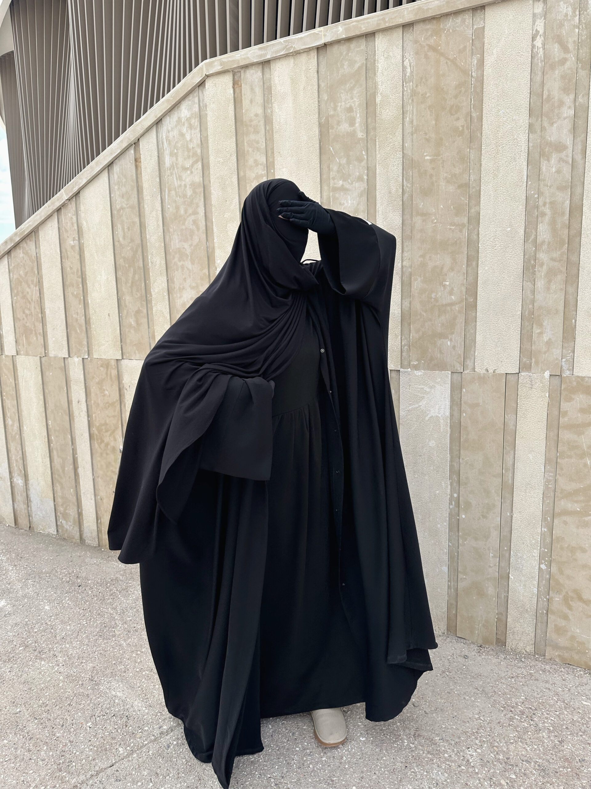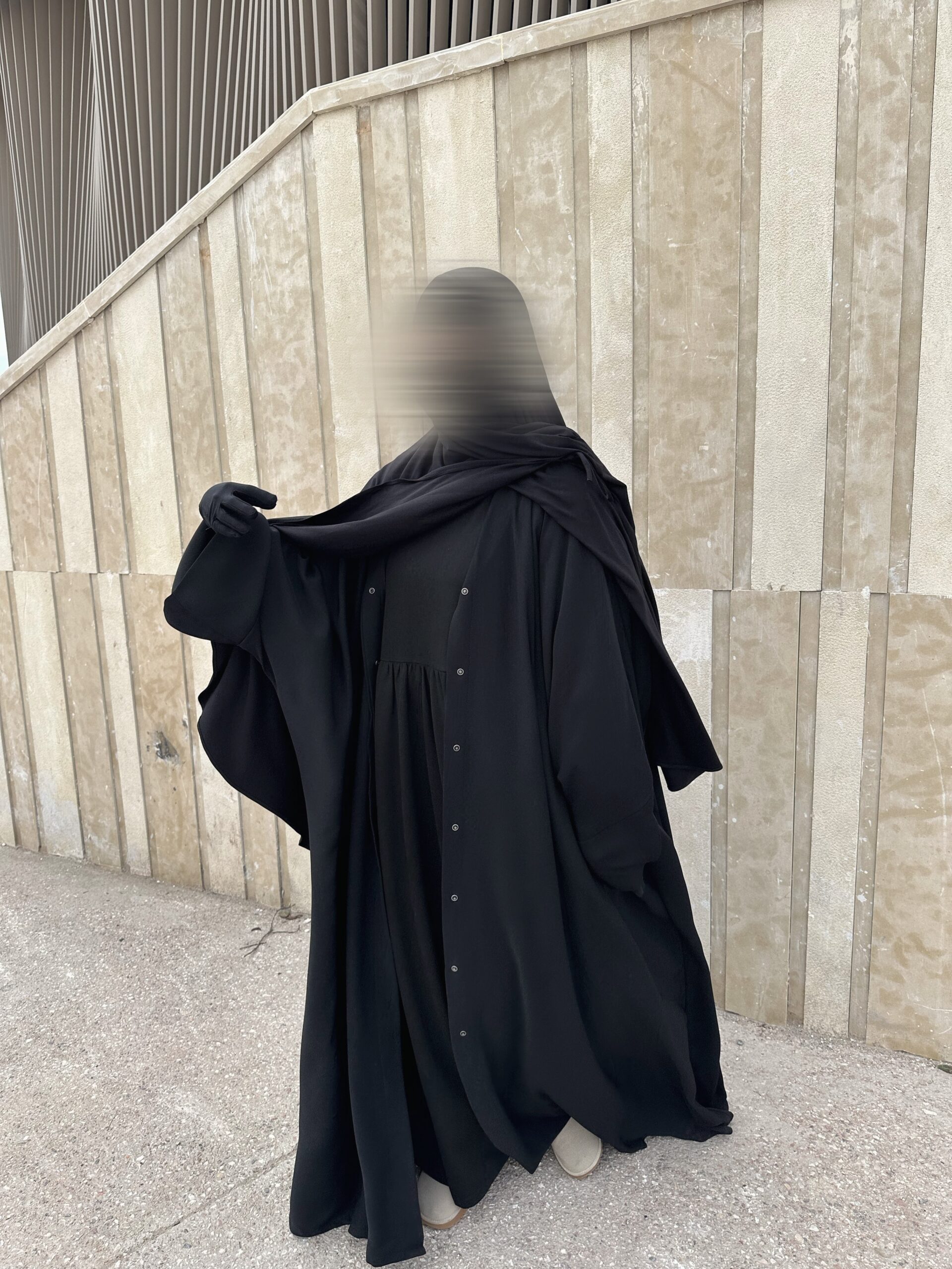Pensé pour accompagner ton quotidien sans contrainte, ce kimono se superpose facilement à une abaya ou une tenue épurée, pour une allure élégante et confortable.
