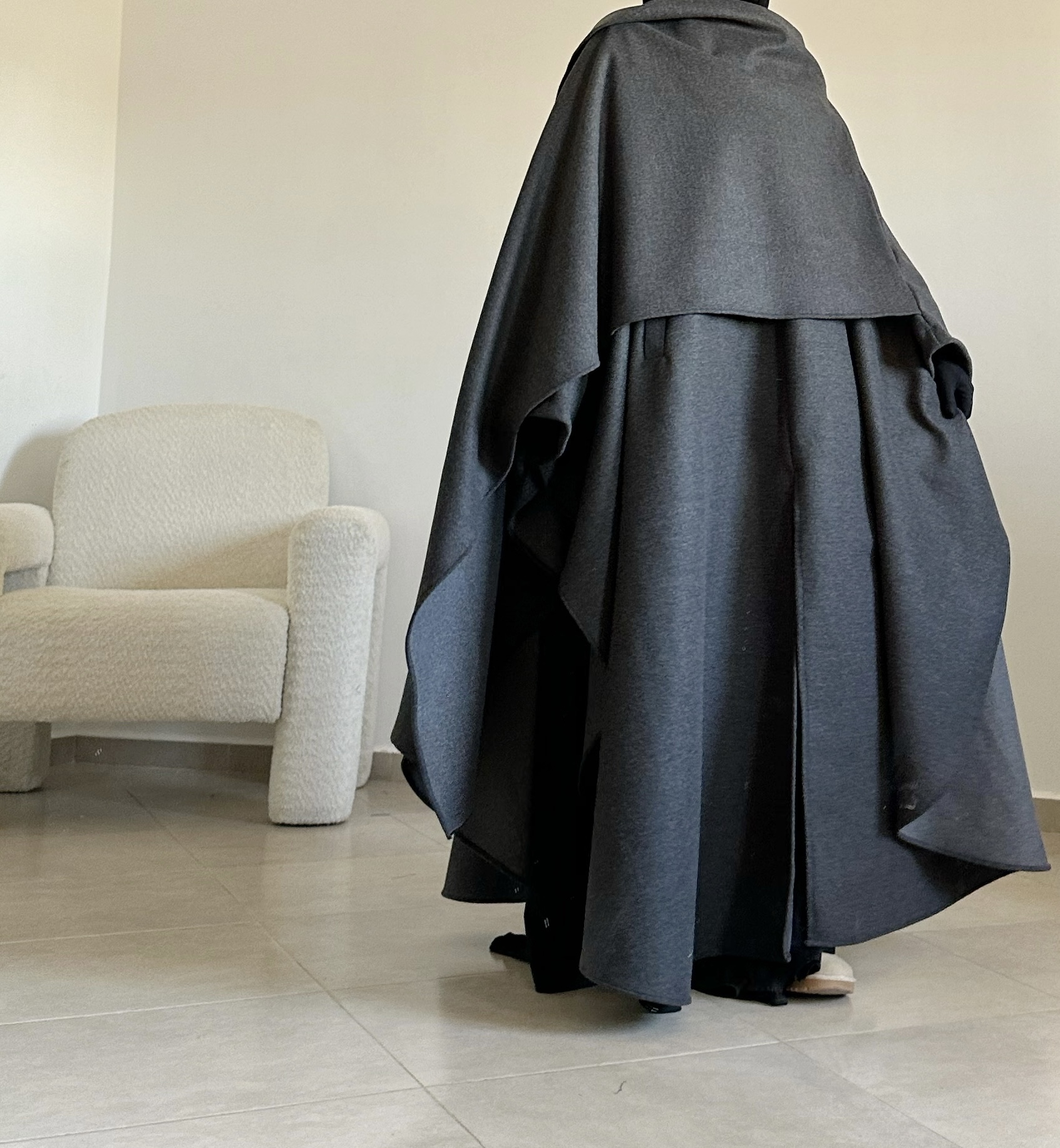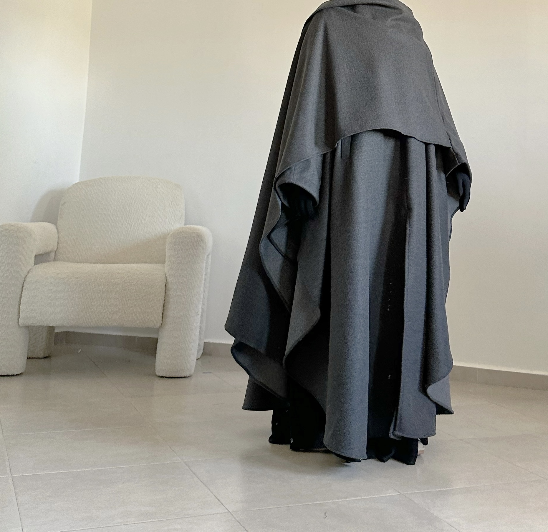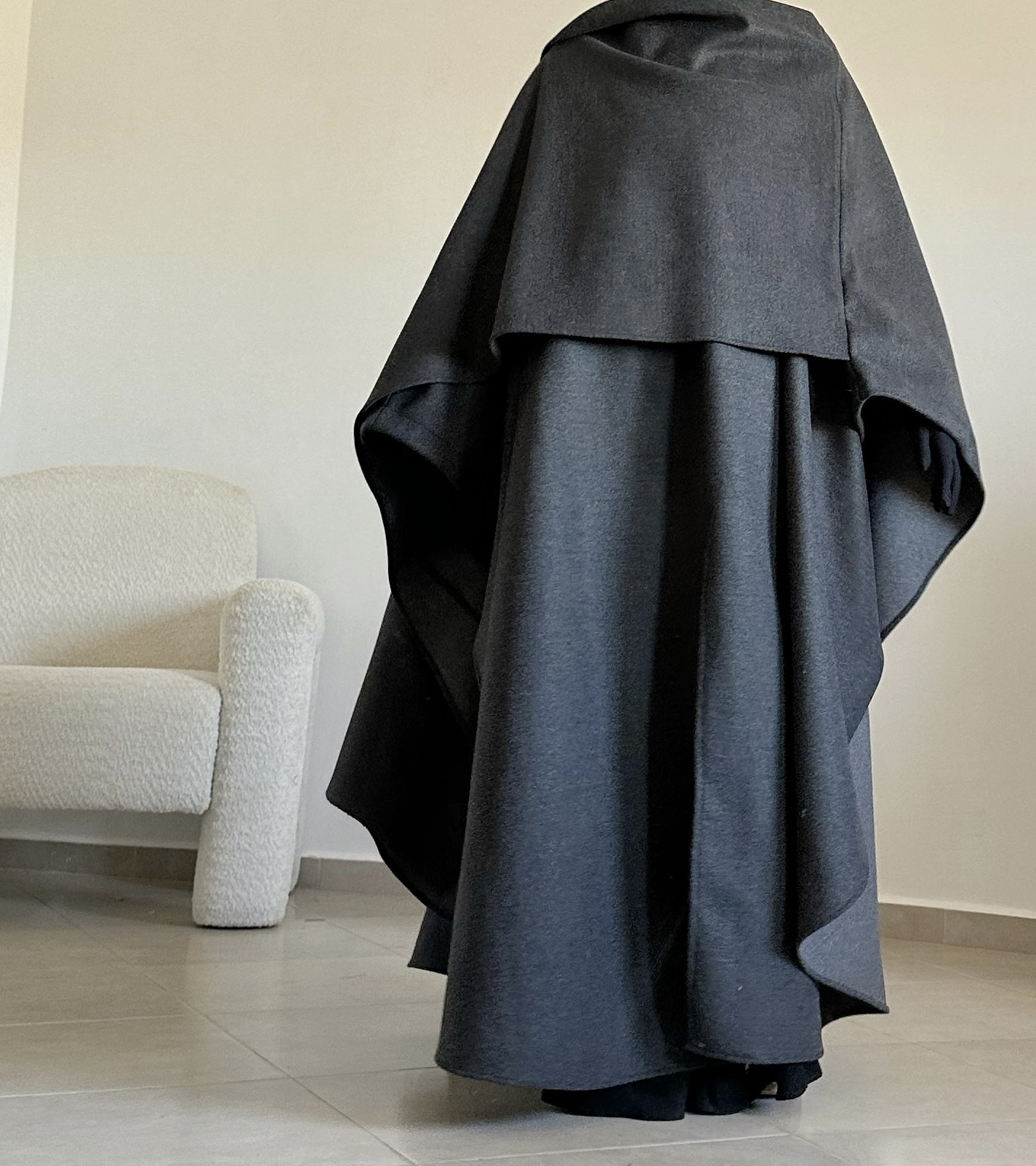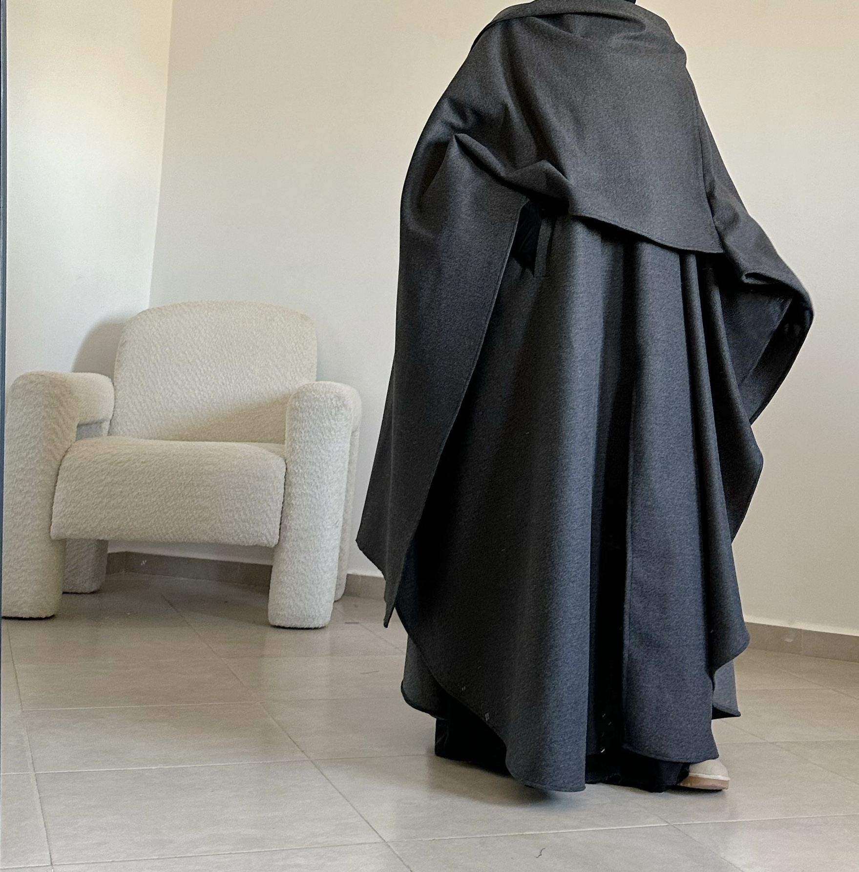 Le tissu en cachemire est doux, chaud et agréable à porter. Dès qu’on l’enfile, on sent la différence : il protège vraiment du froid tout en gardant une belle tenue (fini les manches des abayas qui remontent).