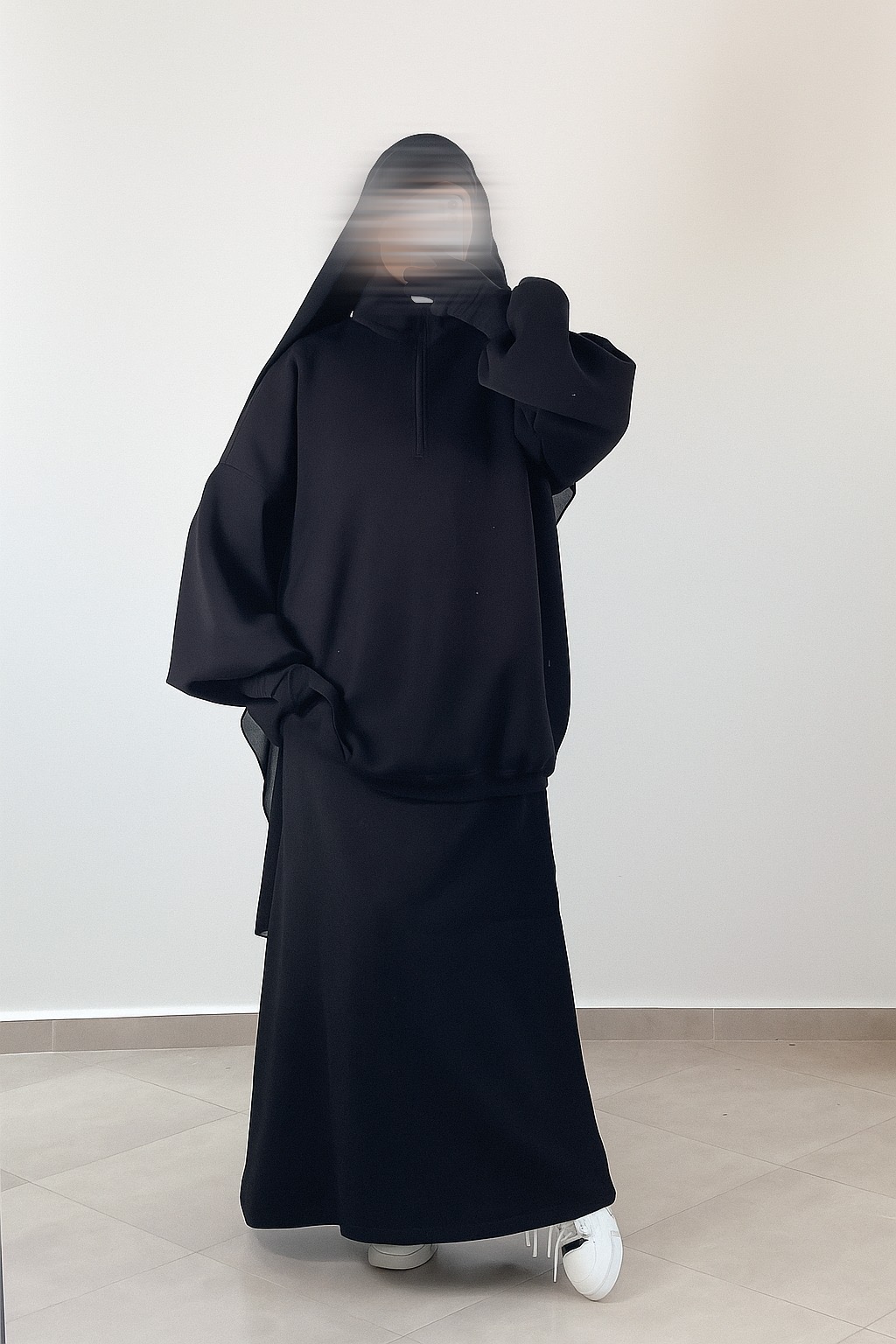 L’ensemble crée une silhouette fluide et équilibrée, idéale pour rester mastoura tout en profitant d’un confort maximal.