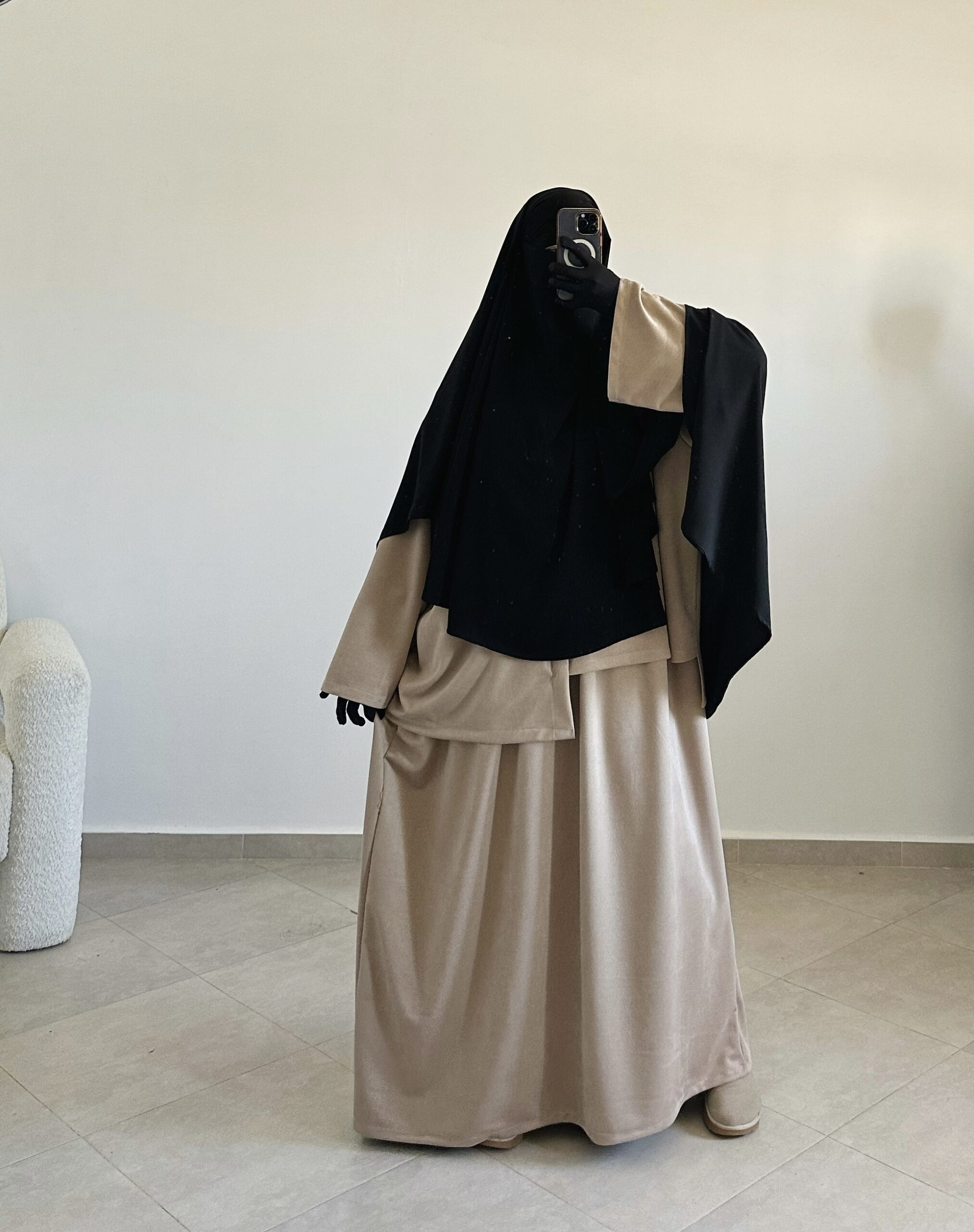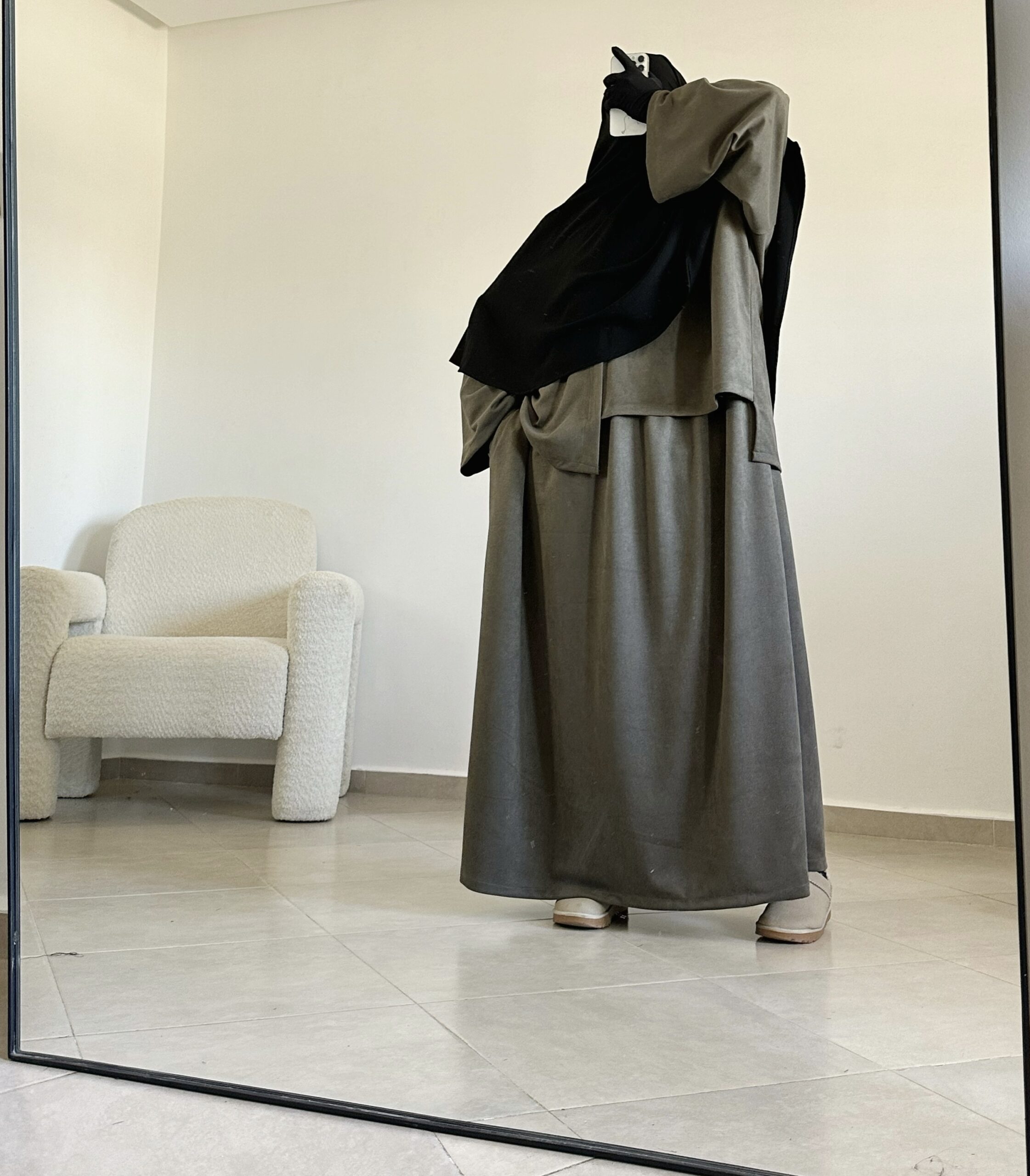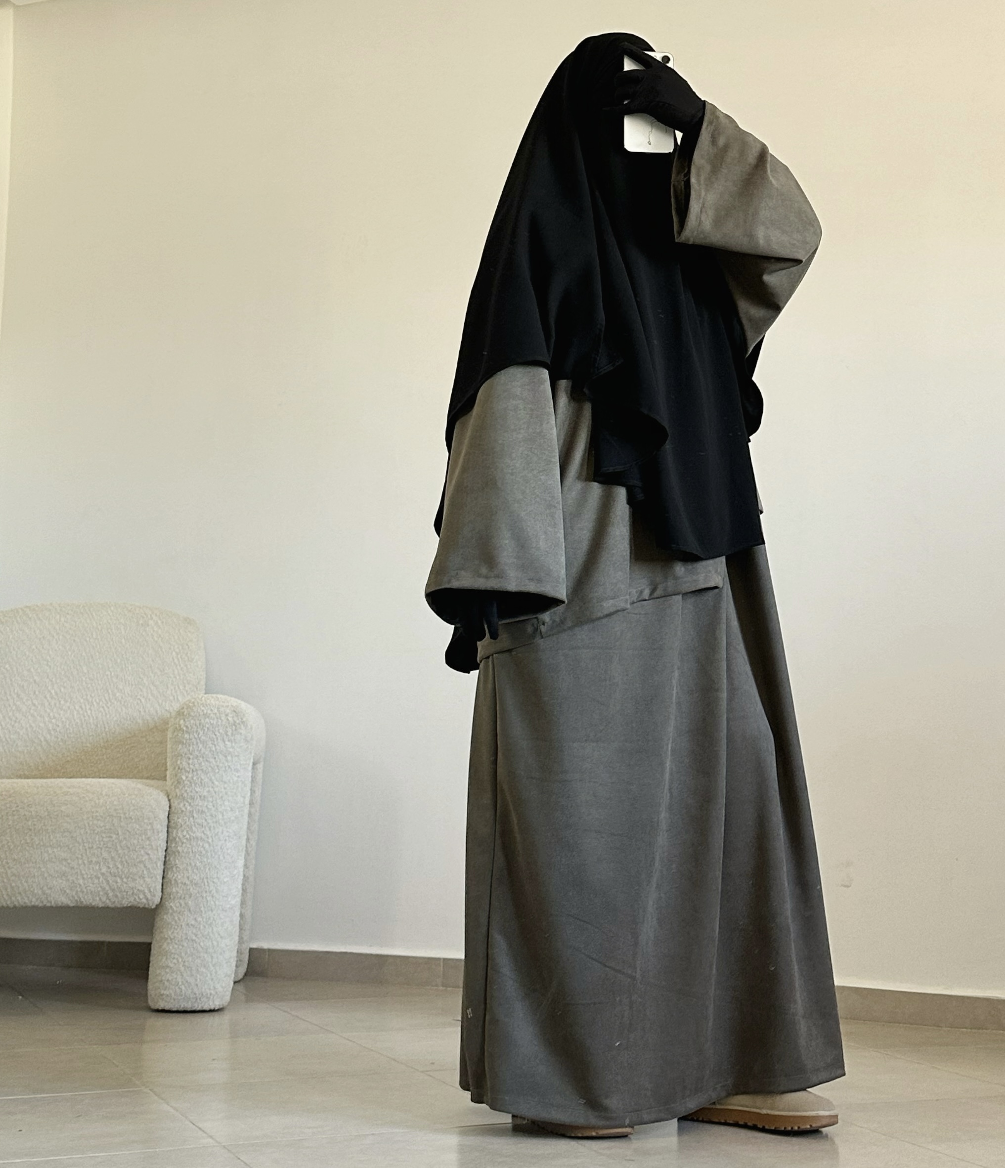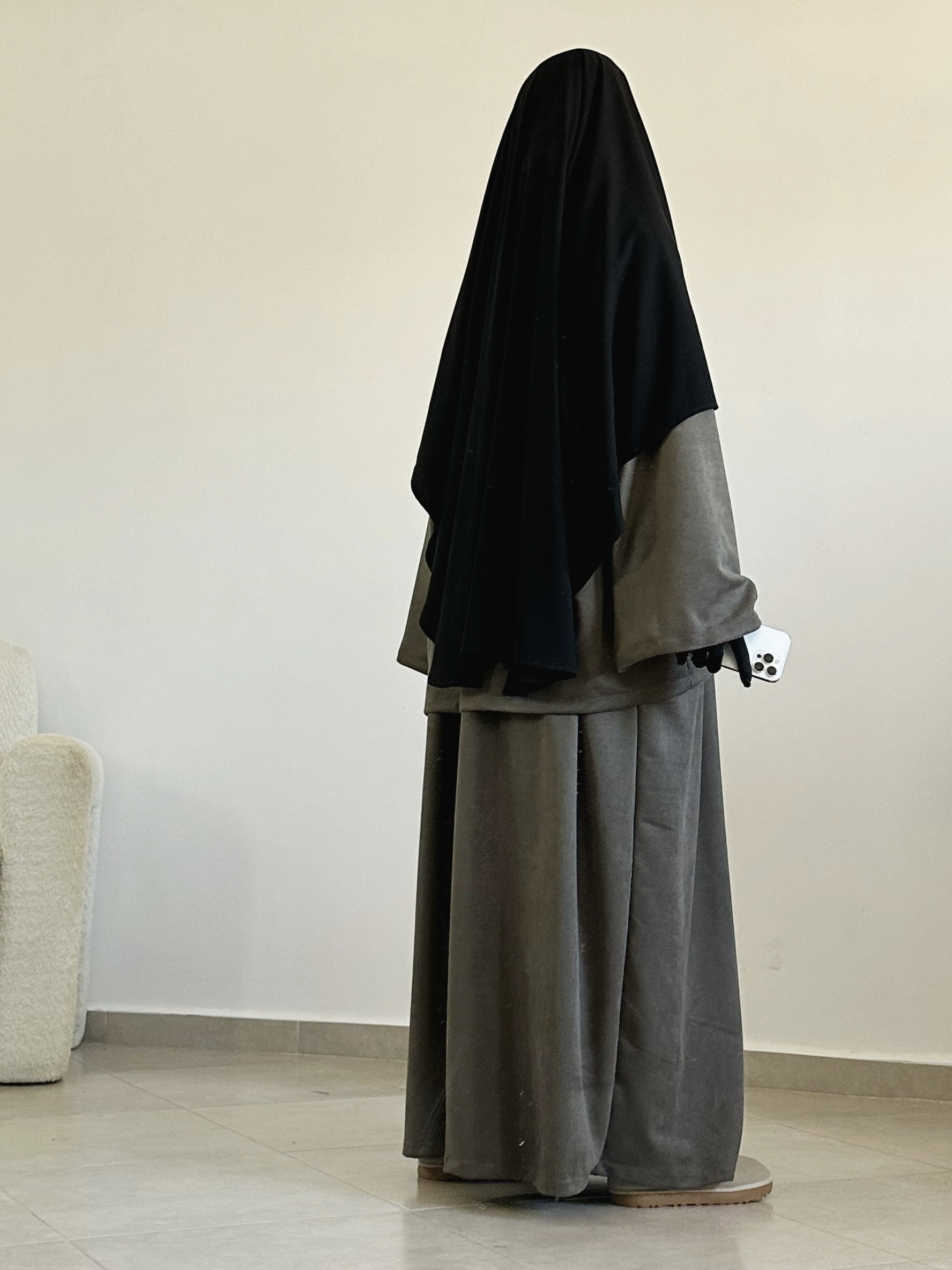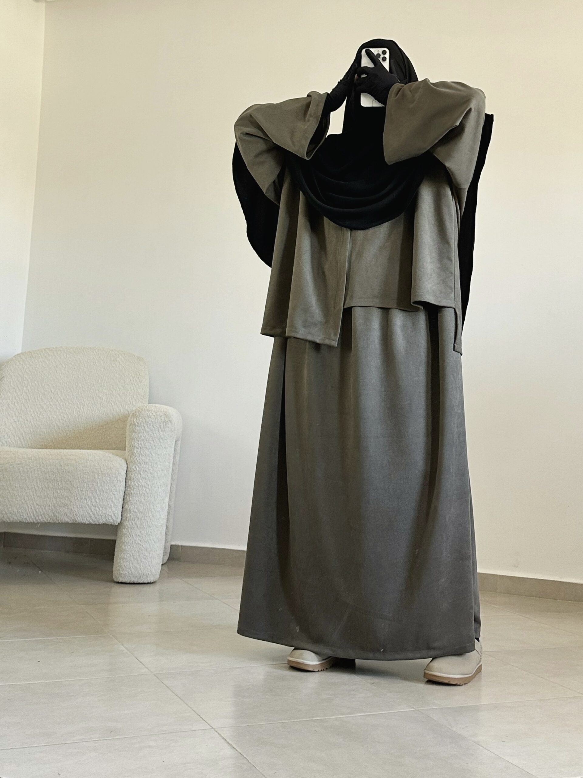 - une abaya manches longues à la coupe fluide